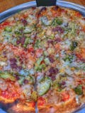 Crushed tomato base, zucchini, broccoli, caramelized onions, kalamata olives, artichoke, garlic, cheese blend.