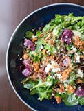 arugula, spinach, beets, opal apple, grape, fried celery root, cardamom almond, port-soaked cranberry, goat cheese, honey goat vinaigrette