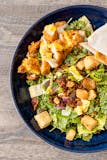 romaine, spinach, shaved broccoli & brussels sprouts, garlic crouton, shaved parmesan, garlic parmesan, creamy caesar dressing