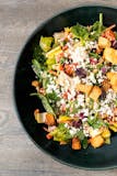 romaine, spinach, red pepper, cucumber, tomato, carrot, red onion, feta, kalamata olives, crouton, oregano, whipped feta, greek vinaigrette