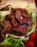 Tomatoes, cucumbers, onions, olives, and feta cheese in an olive oil dressing.