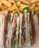 Pepperoni, sausage, hamburger, bacon, onion, pepper, mushrooms, black olives, and tomato.