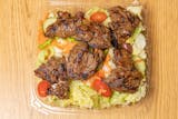 Tomatoes, cucumbers, onions, olives, and feta cheese in an olive oil dressing.