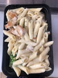 Romaine lettuce, croutons and Parmesan cheese. Caesar dressing on the side
