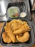Lettuce, tomatoes, cucumbers, green peppers, black olives and house dressing on the side