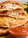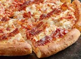 Topped with cheese, bacon, hamburger, chicken, and pepperoni.