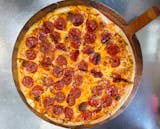 Savor the timeless favorite that is our Pepperoni Pizza. Crafted with care, our artisanal crust is lovingly adorned with a rich tomato sauce, a generous layer of melted mozzarella cheese, and a plentiful scattering of zesty pepperoni slices. Each bite offers a perfect balance of savory flavors and spicy kick, perfectly complemented by the gooey cheese and tangy tomato sauce. A true customer favorite, this pizza promises a satisfying dining experience that celebrates the bold flavor of pepperoni.