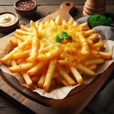 Our red pizza sauce, cheddar, mozzarella, feta, parmesan cheese.