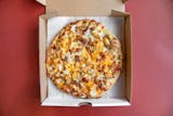 No sauce with ranch dressing, crispy chicken, bacon, cheddar cheese and mozzarella cheese.
