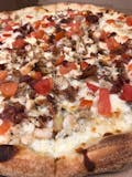 Ranch Sauce, Grilled Chicken, Smoky Bacon, Diced Tomatoes topped with Fresh Mozzarella.