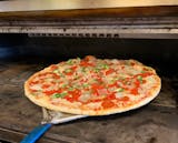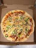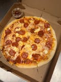 Pepperoni, Jalapenos, Caramelized Onions, Red Peppers, Garlic.