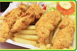 Deep-fried Crispy CHicken Tenders with Fries, Salad & your choice of dipping sauce