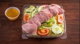 White pie topped with tender grilled chicken, ham & provolone cheese.