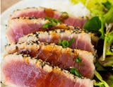 Sesame seed encrusted ahi tuna, soy sauce, wasabi cream.