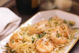 Jumbo shrimp and shallots sautéed in a white wine and garlic butter sauce over linguine
