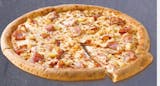 Pepperoni, sausage, ground beef, mushrooms, onions, green peppers, tomatoes, turkey ham & oregano.