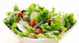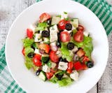 Tomatoes, cucumbers, onions, olives, and feta cheese in an olive oil dressing.