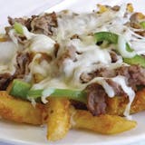 Crispy French fries topped with sirloin cheesesteak meat, grilled onions & green peppers, and our special blend of 100% fresh natural cheeses.