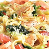 Sauteed shrimp, spinach and diced tomatoes, in our old bay spiced alfredo sauce, served over fettuccine, topped with shredded parmesan cheese and scallions