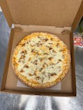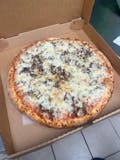 Chopped steak, onions & green peppers on top of pizza sauce with our perfect blend of cheese.