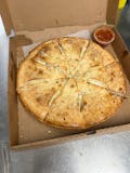 Our creamy crab dip spread over our fresh dough, topped with our perfect blend of cheese & tomatoes.