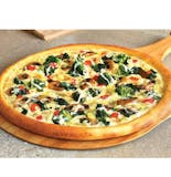 Vegetarian. Sautéed broccoli, mushrooms, spinach, and tomatoes in our alfredo sauce, topped with green onions and our signature cheese blend.