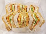 Turkey, bacon, lettuce, tomatoes, mayonnaise, American cheese.