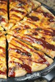 BBQ sauce, smoked cheddar, bacon, and mozzarella cheese.