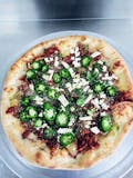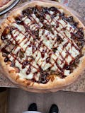 Chicken, BBQ sauce, bacon & mozzarella cheese.