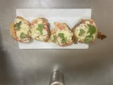 Cooked on a Sicilian pan, with fresh garlic/marinara sauce, fresh diced tomatoes, sprinkled with parmigiana cheese, and fresh basil.