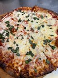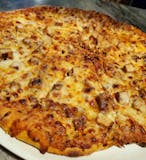 Alfredo, tomato & pesto sauce, blackened chicken, mozzarella.