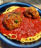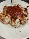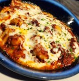 Meat sauce, meatballs, mozzarella cheese, Romano cheese.
