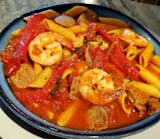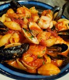Sea scallops, shrimp, mussels, clams, spiced marinara broth, sea shell pasta.