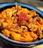 Garlic, tomatoes, onions, peppers, spicy marinara broth, penne pasta.