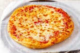 A sauceless pie topped with ricotta, mozzarella, and parmesan cheese.
