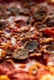 Mushrooms, pepperoni, ground beef, sausage, onions, green peppers, black olives and extra cheese.