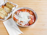 Lasagna layered with ricotta cheese and meat sauce made from our marinara sauce and ground beef, topped with mozzarella cheese.