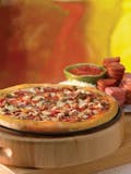 Pizza sauce with pepperoni, italian sausage, mushrooms, green peppers, onions, black olives, and our signature cheese blend.