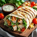 Juicy grilled chicken, crisp romaine, parmesan, and Caesar dressing all wrapped up in a warm tortilla. Served with your choice of side—fresh, flavorful, and satisfying!