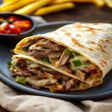 Grilled steak, melted cheese, sautéed onions, and peppers wrapped in a warm tortilla. Big flavor, Philly-style, served with your favorite side!