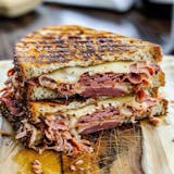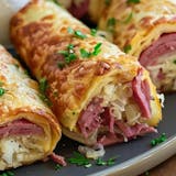 Tender corned beef, sauerkraut, Swiss cheese, and Thousand Island dressing wrapped in a warm tortilla. A deli favorite with a twist—served with your choice of side! Corned beef, Swiss cheese, sauerkraut, thousand Island dressing on rye bread.