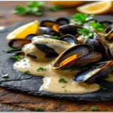 Fresh, tender mussels simmered in a savory garlic and white wine sauce, finished with a touch of butter and fresh herbs. Served with warm, crusty bread perfect for soaking up every last drop. A rich, aromatic dish that’s perfect for sharing—or savoring all to yourself.