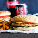 A delectable blend of flavors—juicy, grilled chicken topped with a rich, creamy crab dip, melted cheese, and a touch of Old Bay seasoning. Served on a toasted bun with lettuce and tomato for the ultimate Chesapeake-inspired experience.