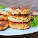 Three juicy salmon sliders served on toasted mini brioche buns, topped with crisp lettuce, fresh tomato, and a tangy house-made dill sauce. Paired with a side of golden, seasoned fries for the perfect balance of fresh and satisfying. A light and flavorful twist on a classic favorite!