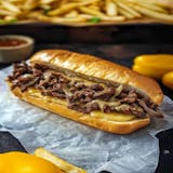 A Philly-inspired favorite! Tender slices of grilled steak loaded with sautéed onions and melted provolone cheese, all tucked into a warm hoagie roll. Bold, savory, and seriously satisfying.