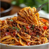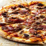 Tomato sauce, mozzarella cheese & a combination of meats such as pepperoni, sausage, bacon, ground beef & ham.