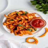 Light, flaky tilapia fillets seasoned and fried to golden perfection, delivering a crispy outside and tender, flavorful inside. Served with lemon wedges and your choice of dipping sauce. A satisfying catch that’s crispy, fresh, and full of flavor. Served with French fries.