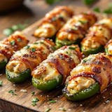 Crispy, golden-fried jalapeños stuffed with creamy cheese and just the right amount of heat—perfect for snacking or sharing.