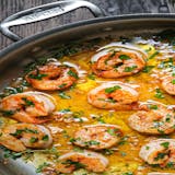 Succulent shrimp sautéed in a zesty garlic lemon butter sauce, finished with fresh herbs and a hint of spice.