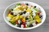 Romaine lettuce, tomatoes, olives, feta, onions, hot peppers, pepperoncini & cucumbers.